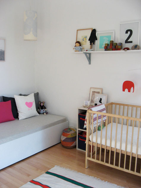 The reality check arrived express-post the first week of the semester, like a nice big slap in the face. Lately, my days actually mainly consist of reading, writing, studying and then more studying. Although I do make breakfast everyday and have tried yoga (twice...with a dvd in my living room...in my pyjamas. Still counts!). I also have to admit that I have allowed myself more too many breaks in between readings to make a batch of ginger-molasses cookies and some chocolate-bourbon-orange cupcakes...and maybe a quiche or two but really that's it, I swear! The rest of the day is entirely dedicated to waaay too much studying. All work and very little play. My poor brain. I shall give it a rest from research for tonight and simply post a selection of my favourite nurseries for a friend of mine who is expecting a baby of her very own in the next few months. Photos of children's rooms are so much fun to flip through and I have always thought that they would be the best room in the house to decorate because you can go completely nuts with colour and patterns. I have seen many sweet, whimsical fabrics and furniture pieces that are just waiting to make their way into a little boy or girl's nursery.